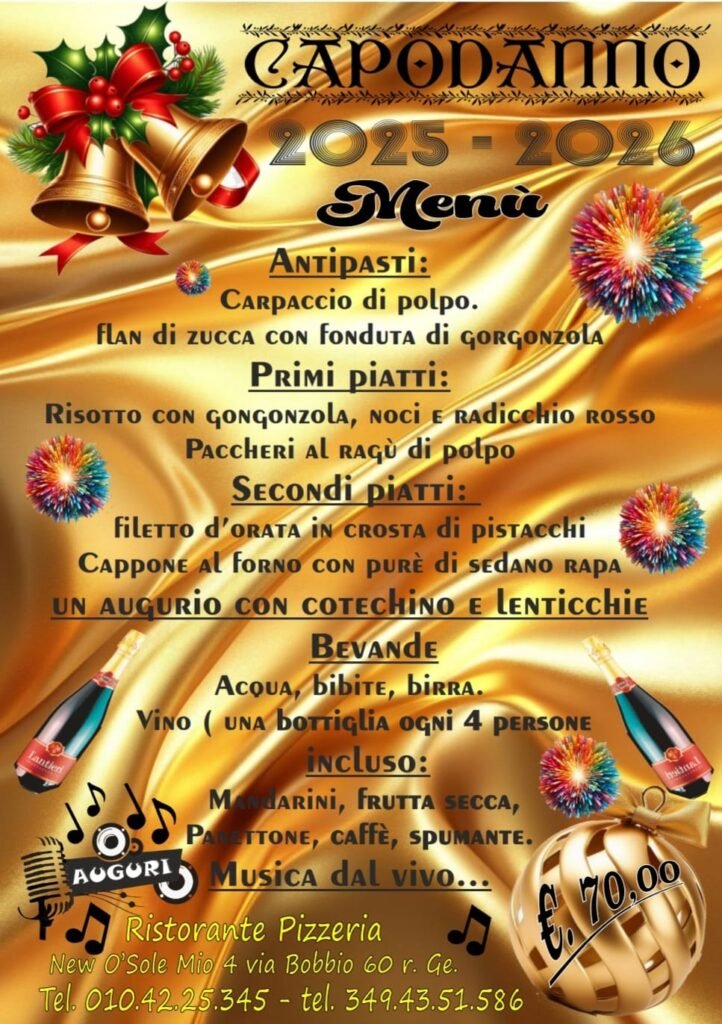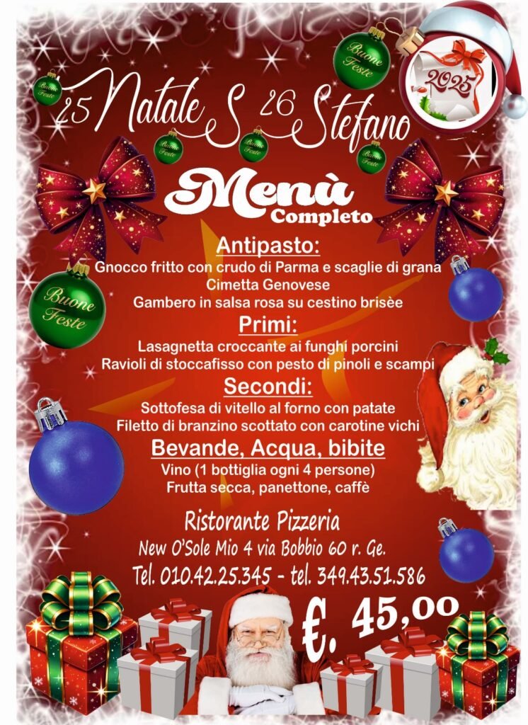 Nei Ristoranti Pizzeria New O’ Sole Mio 4, l’accoglienza e il calore si fondono con la tradizione culinaria ligure e napoletana, creando il luogo ideale per giovani e famiglie che vogliono godersi una serata in allegria. In un ambiente conviviale con ampio dehor, potrai gustare piatti tipici e oltre 60 tipi di pizze cotte in forno a legna.